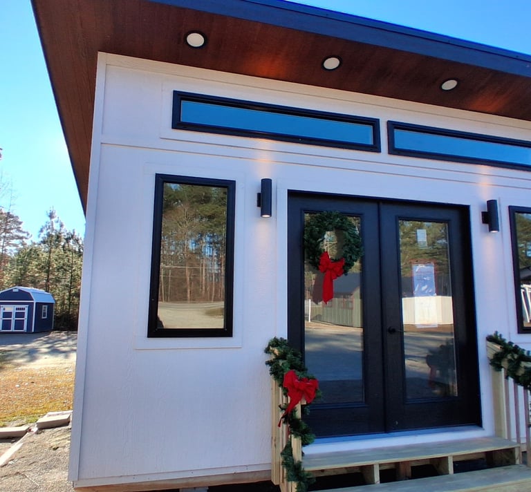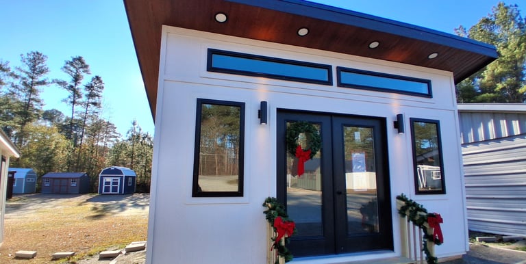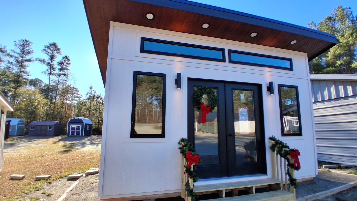 The Studio design enhances any backyard with its modern and sleek aesthetic. It is perfect for establishing a home office or craft area, providing plenty of natural light.