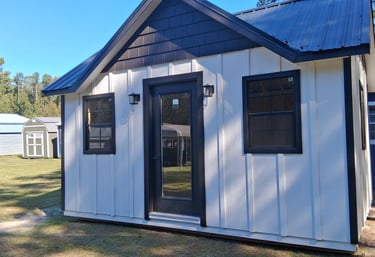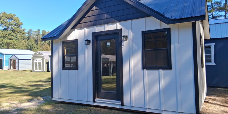 The Studio design enhances any backyard with its modern and sleek aesthetic. It is perfect for establishing a home office or craft area, providing plenty of natural light.